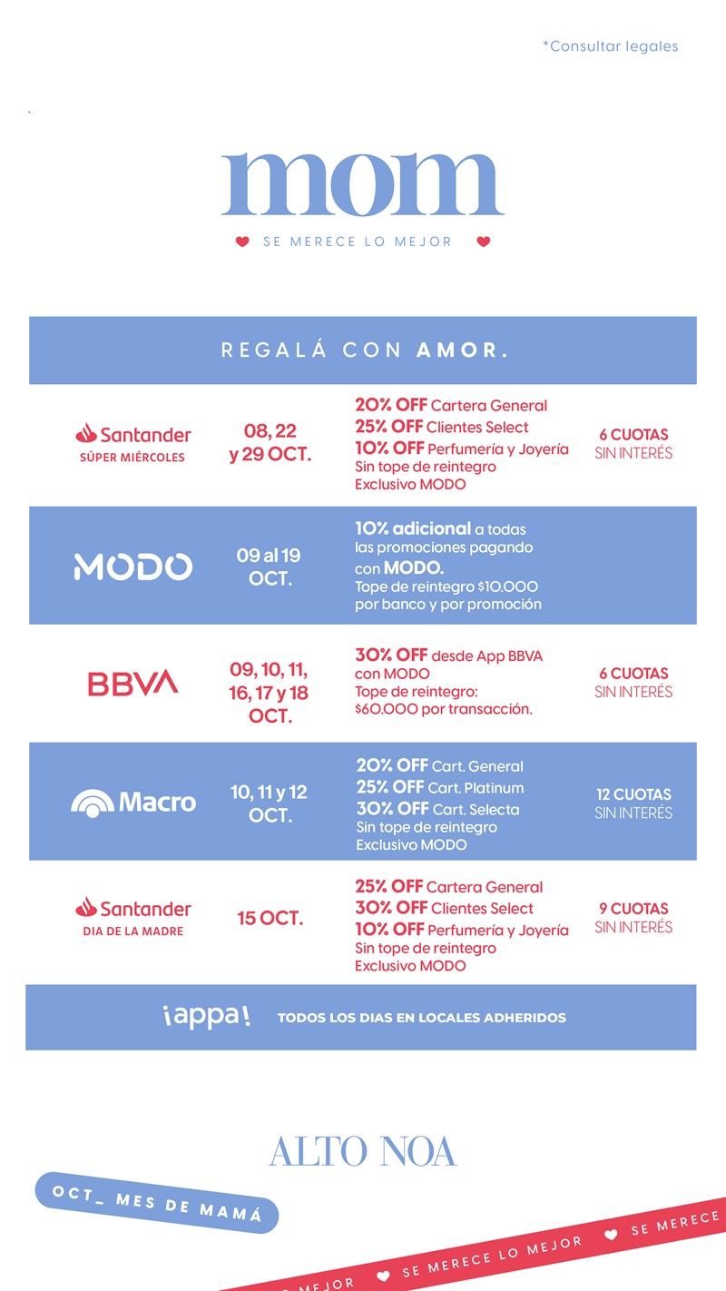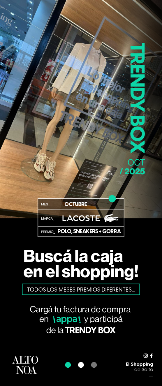 y descuentos importantes todas las semanas para que nuestros clientes estén en constante descubrimiento y recurrencia en el shopping. La constancia, dedicación y experiencia son factores y premisas esenciales en nuestro equipo de trabajo para brindar la mejor calidad y experiencia Alto Noa. Te invitamos a conocernos en uno de los puntos más importante de la ciudad de Salta, cercano al centro y zonas turísticas.